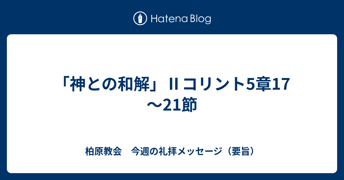 神との和解 コリント5章17 21節 柏原教会 今週の礼拝メッセージ 要旨